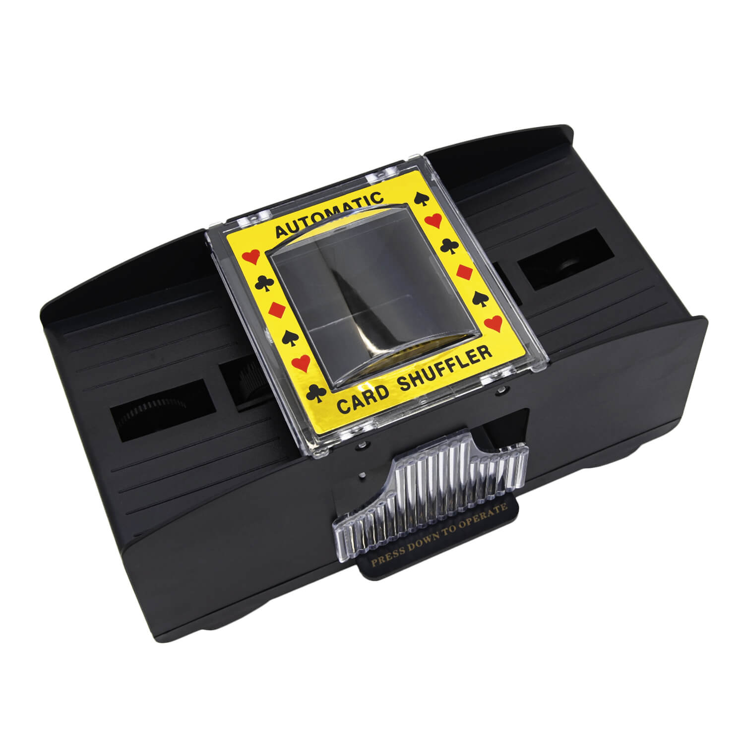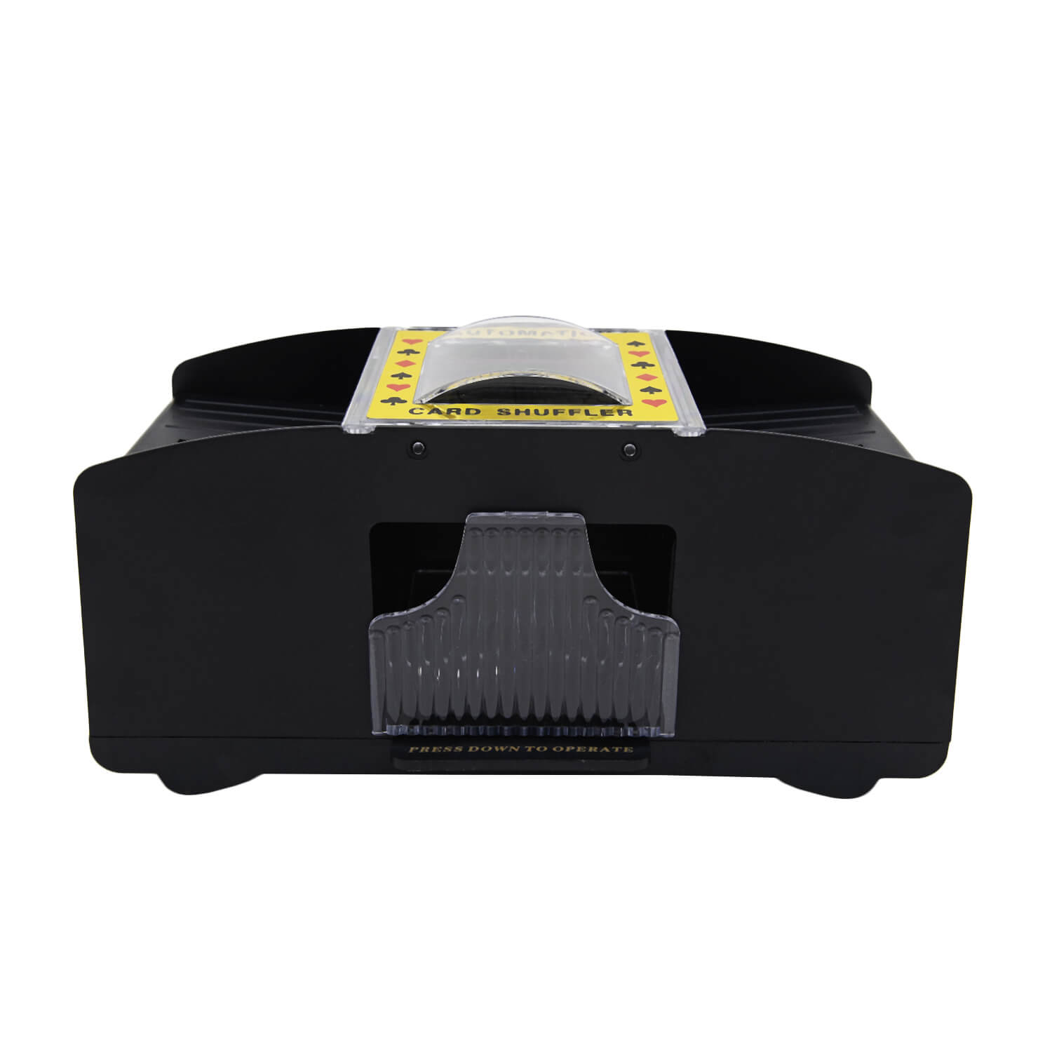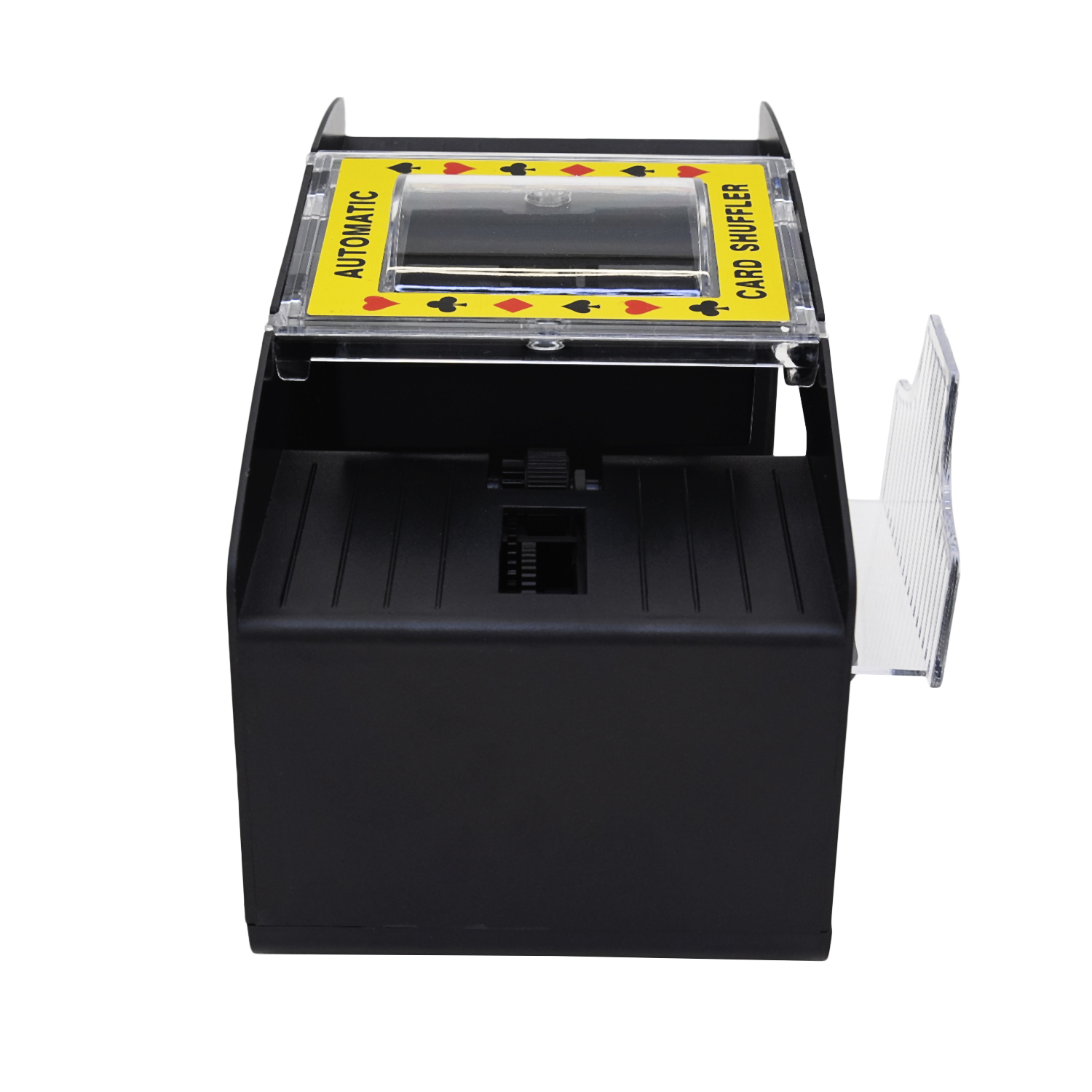Шафл-машинка для перемешивания карт Deka подойдет для домашних карточных турниров с целью исключения шулерства. Стильная и компактная шафл машинка вмещает до двух полных колод и равномерно их размешивает без участия игроков, создавая случайное расположение карт. Помимо прямого назначения шафл машинка для карт выполняет декоративную функцию и украшает покерный стол. Машинка изготовлена из АБС пластика черного матового цвета с прозрачными вставками. Работает от четырех батареек типа АА. Машинка может использоваться как в казино, так и для домашнего использования в карточных играх.