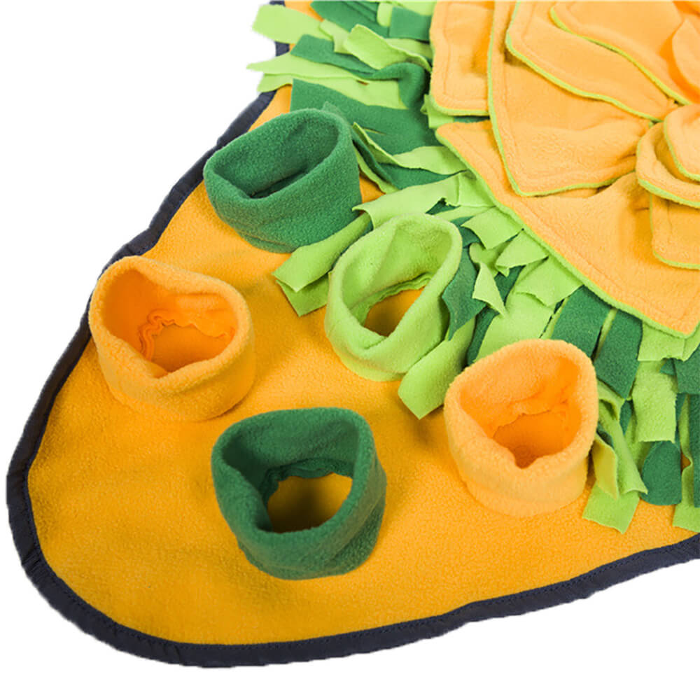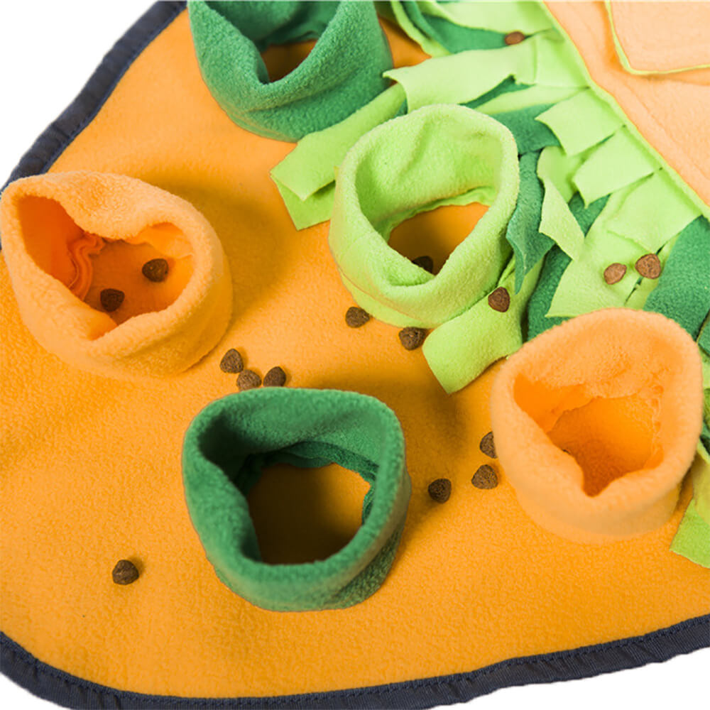 Нюхательный коврик для собак Starly из полиэстера предназначен для развлечения питомца без участия хозяина, снятия стресса, тренировки нюха. Нюхательная игрушка выполнена из безопасной для здоровья питомца ткани, окрашенной в желтые, оранжевые и зеленые цвета. Многослойная развивающая игрушка для собак оснащена множеством кармашков, в которые можно спрятать любимые собачьи сухие лакомства. Игрушка для поиска еды подойдет питомцам любых пород, размеров и возрастов. Игрушка для поиска лакомств может использоваться в доме или квартире, а также на улице.