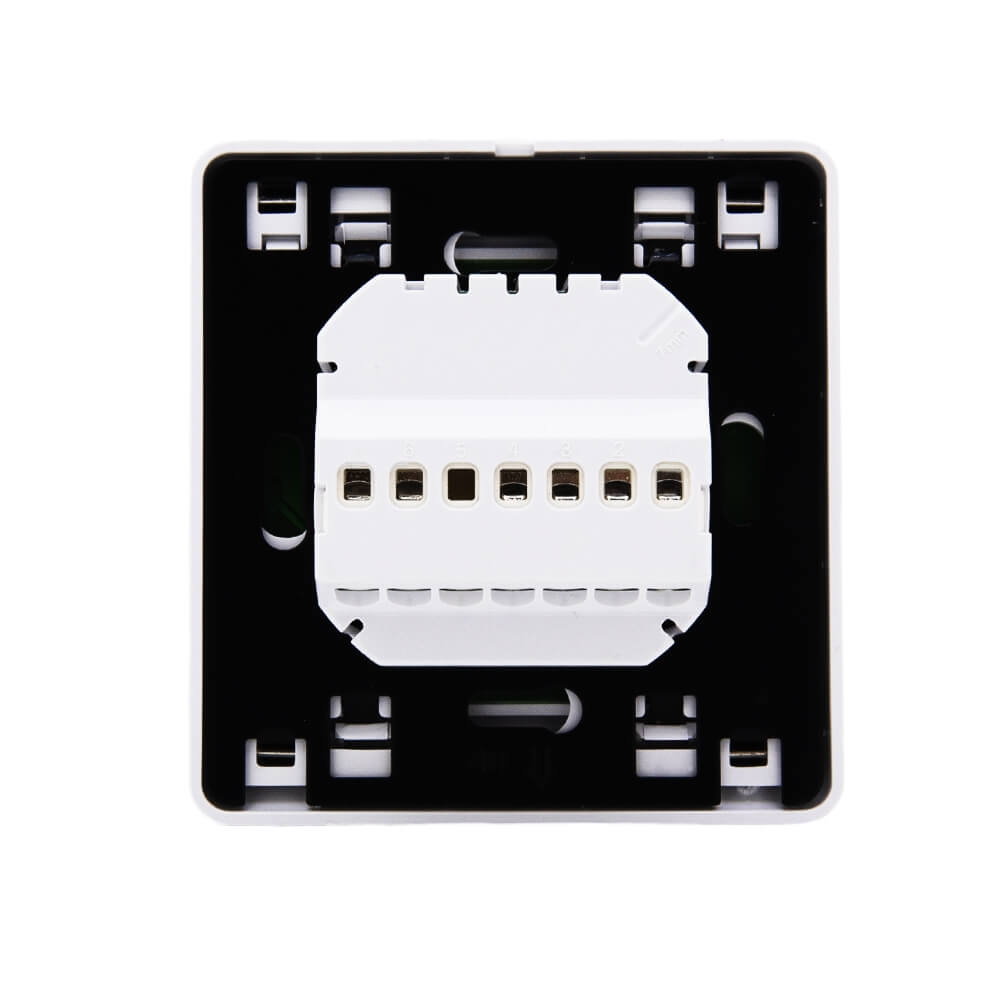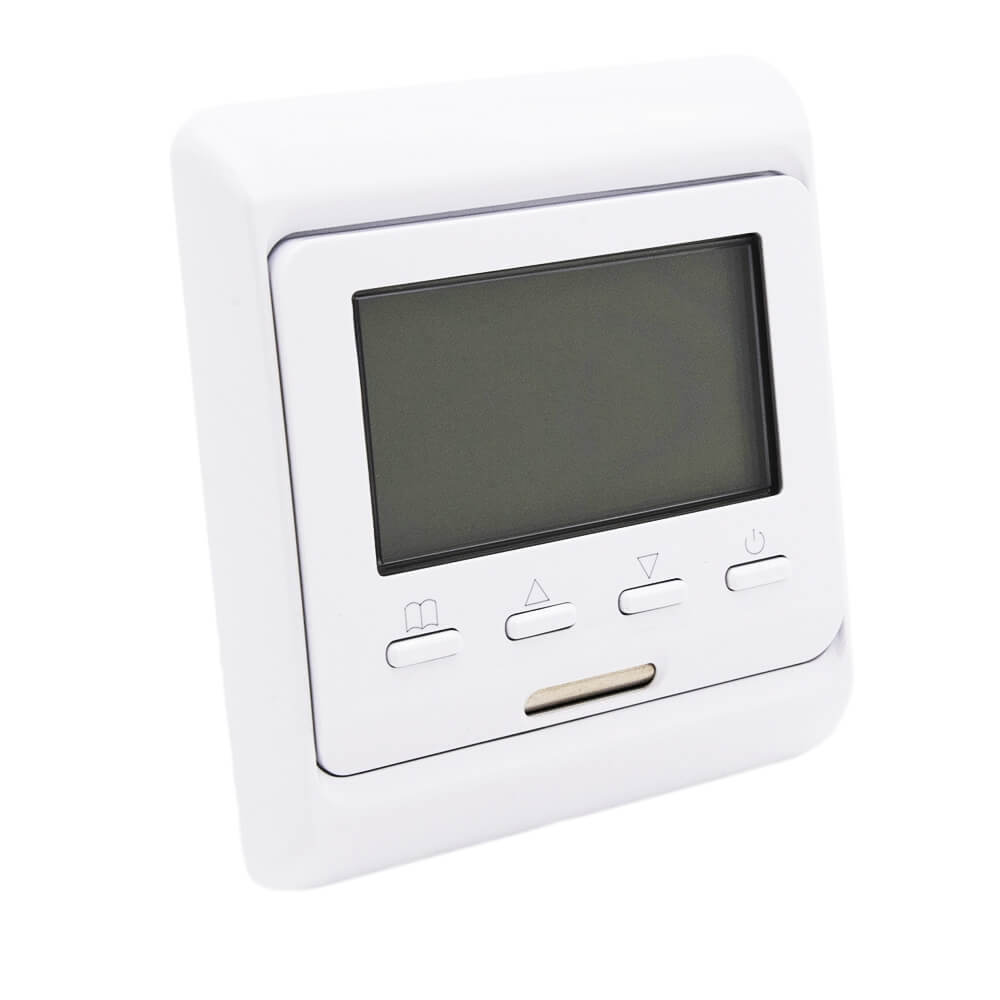 Настенный врезной терморегулятор применяется в системах теплого пола. Прибор оснащен встроенным терморезистором для измерения температуры в месте установки и дополнительным датчиком температуры, который монтируется непосредственно в пол на расстоянии не более трех метров от терморегулятора. Диапазон измерения и регулирования температуры – от 5 до 90 градусов с шагом от 0.5 до 10 градусов. Реле терморегулятора рассчитано на коммутацию нагрузки до 3520 Вт.